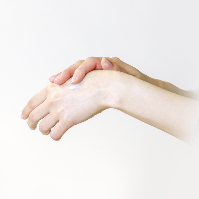 北海道産米麹を使用した「コメ発酵エキス」をはじめ、ナイアシンアミド・アルブチン・ツボクサエキスなどを配合。手肌のキメを整え、乾燥くすみをクリアに導きます 。